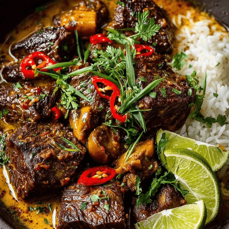 Lemongrass Coconut Braised Beef. Tender, melt-in-your-mouth beef with a hint of lime and fresh Thai basil for brightness — cozy, indulgent, and impossible not to love.