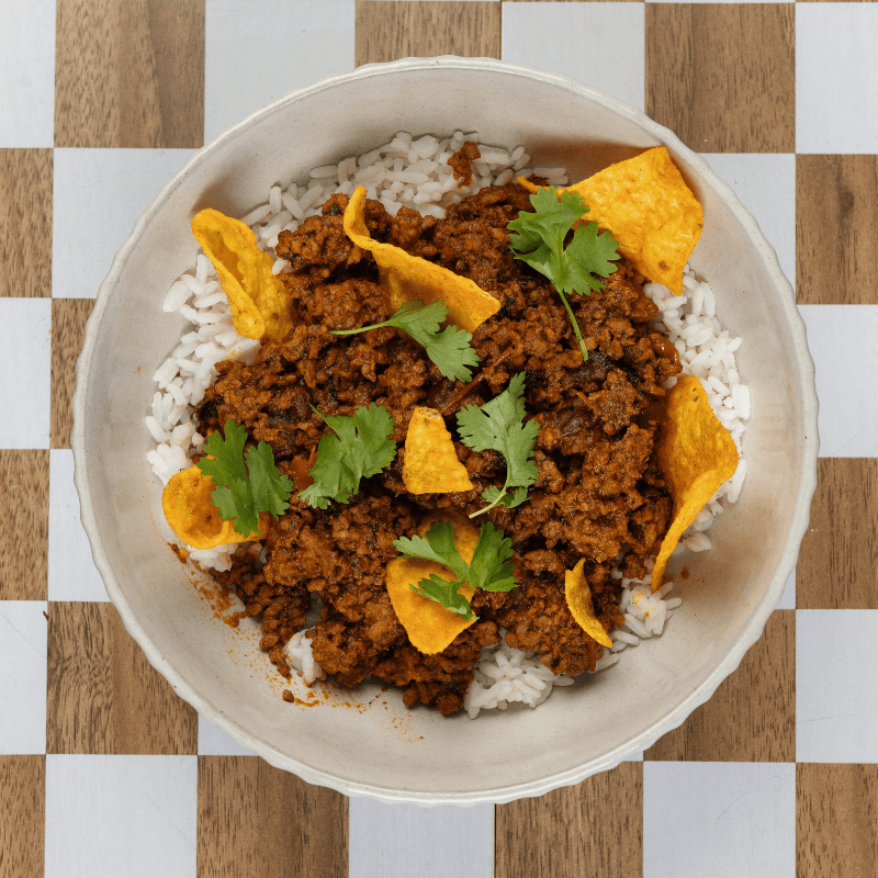 Scatter corn chips on top for a bit of crunch, or use them to scoop up the chilli like a pro.